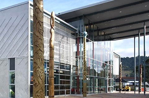 Information about design and meaning of each of the ten pou outside the Whangārei Central Library building.